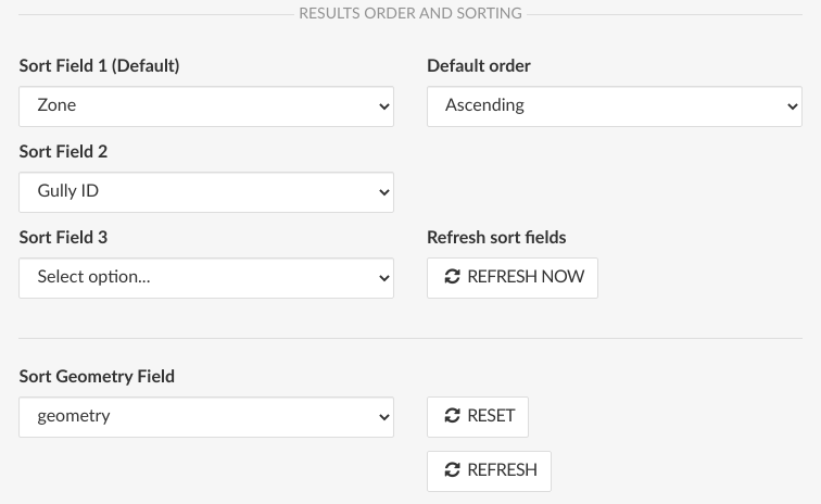 The Sort Geometry Field is used to specify the location field that should be used to create a spatial index.